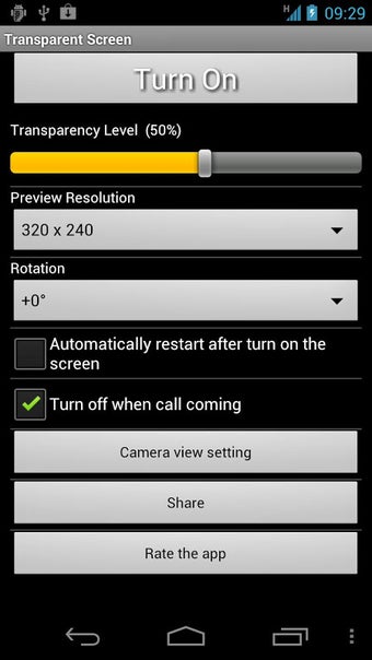 Transparent Screen är en Android-app som låter dig göra din telefons eller tablets skärm genomskinlig med kameran! Du kan fortfarande se vad som händer på gatan, och vem som kommer bakom dig medan du spelar ett spel, chattar online, eller gör många andra saker.